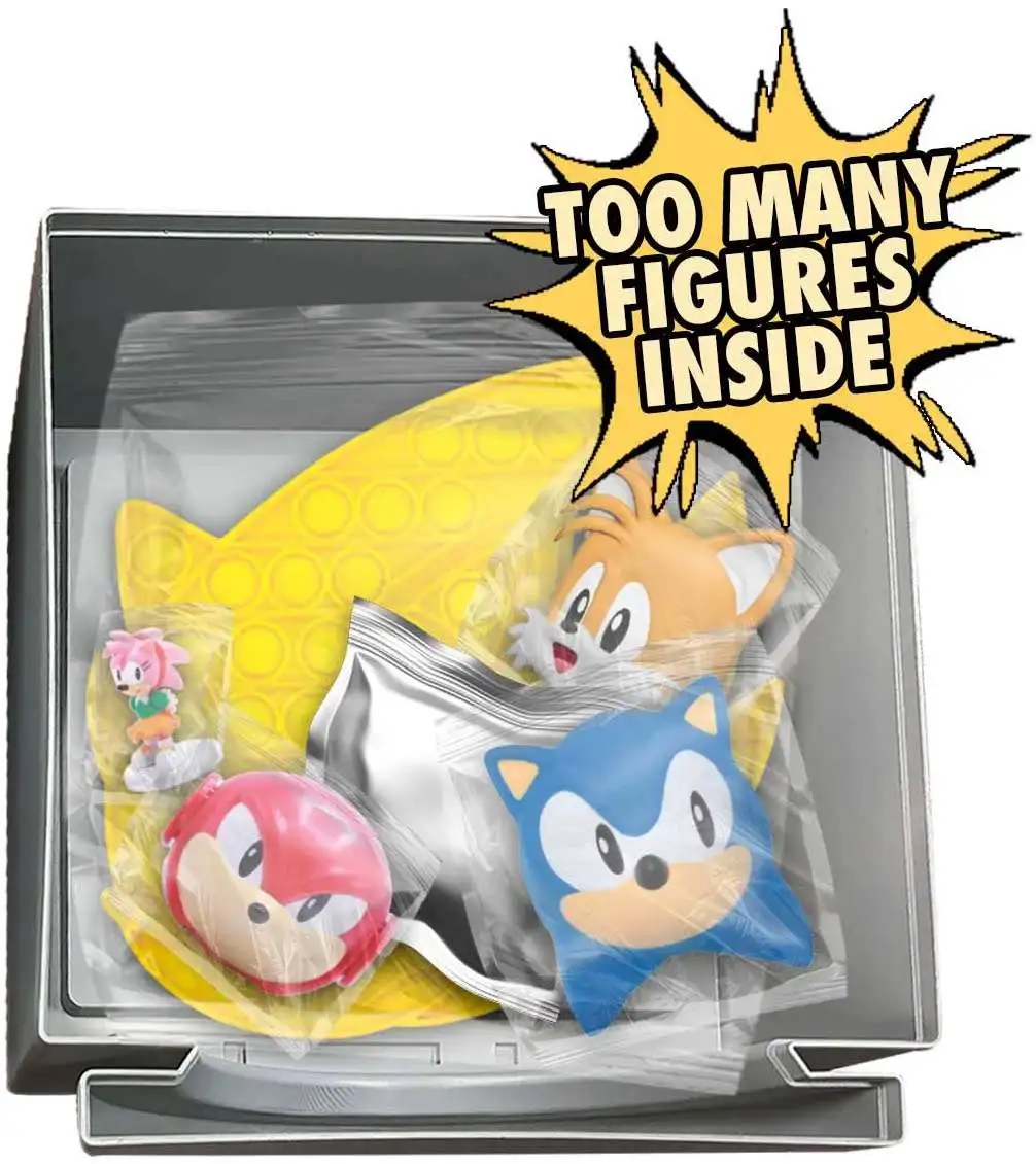 - This giant Sonic TV includes 1 squishme series 1, 1 backpack hanger series 5, 1 sticker squishme, 1 fidget spinner, 1 buildable mini figure, 1 giant bubble pop-it and a chance to find 1 rare Sonic the Hedgehog Mine kit found in 1 of every 5 bundles.