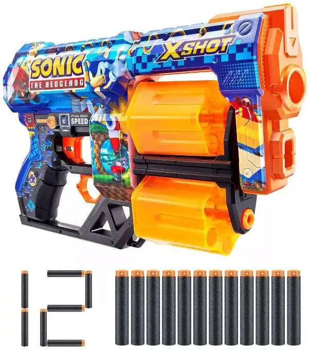 - PACK INCLUSIONS: 1x X-Shot Skins Dread Blaster - Sonic the Hedgehog 12x Air Pocket Technology Foam Darts