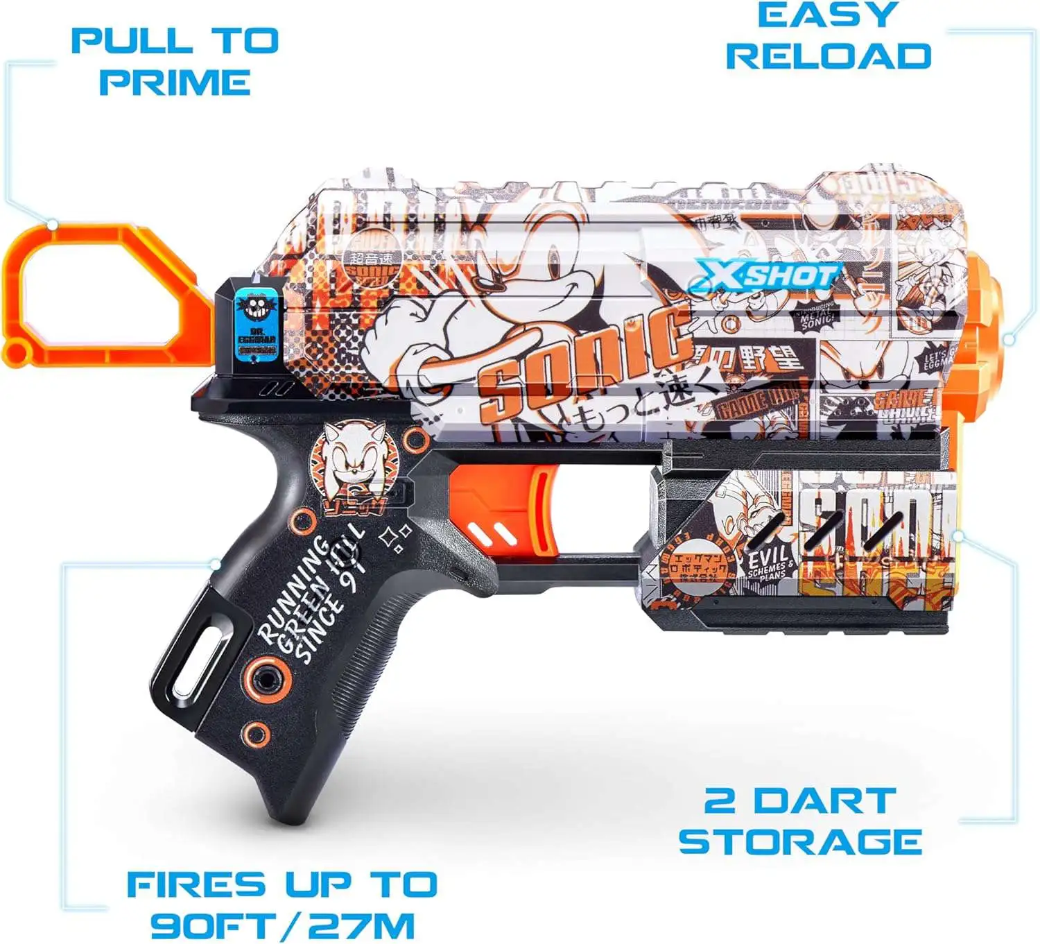 - Choose your Skin: Join the battle with the pop culture icon Sonic the Hedgehog, Tails, and Knuckles with the X-Shot Sonic Skin.