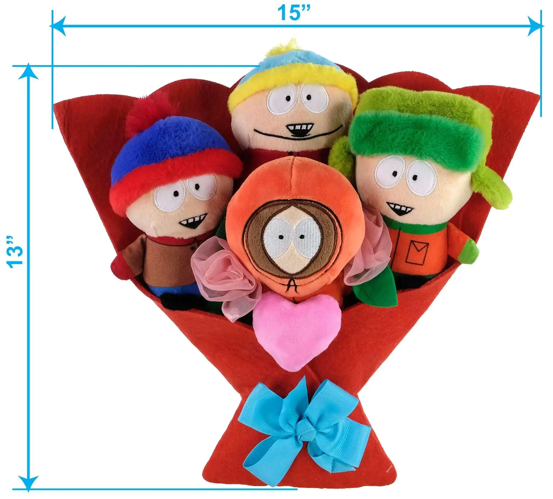 - Features soft, cuddly plush versions of Stan, Kyle, Kenny, and Cartman, presented in a charming bouquet style.