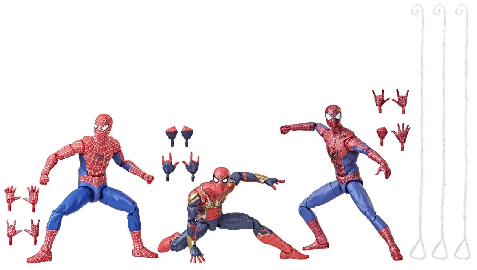 - This Spider-Man: No Way Home action figure 3-pack is inspired by the epic final battle in Spider-Man: No Way Home, featuring all three cinematic Spider-Man Super Heroes in their unique attire!