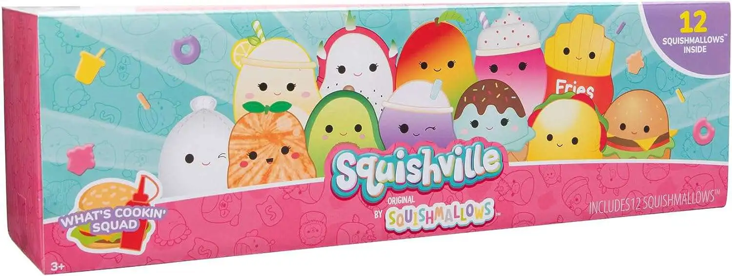 - 15 FAVORITES IN ONE PACK -There are 12 fan-favorite Squishmallows plush in the What's Cookin' Squad pack