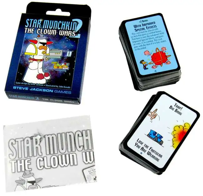 Star Munchkin took the rules-bending, power-gaming, dungeon-crawling insanity of the original Munchkin and put the whole thing in space, where the monsters are more alien, the weapons more zappy, and the treasure -- well, there's still piles of treasure. Now Star Munchkin 2 brings the epic saga of The Clown Wars to life, except with better acting . . .