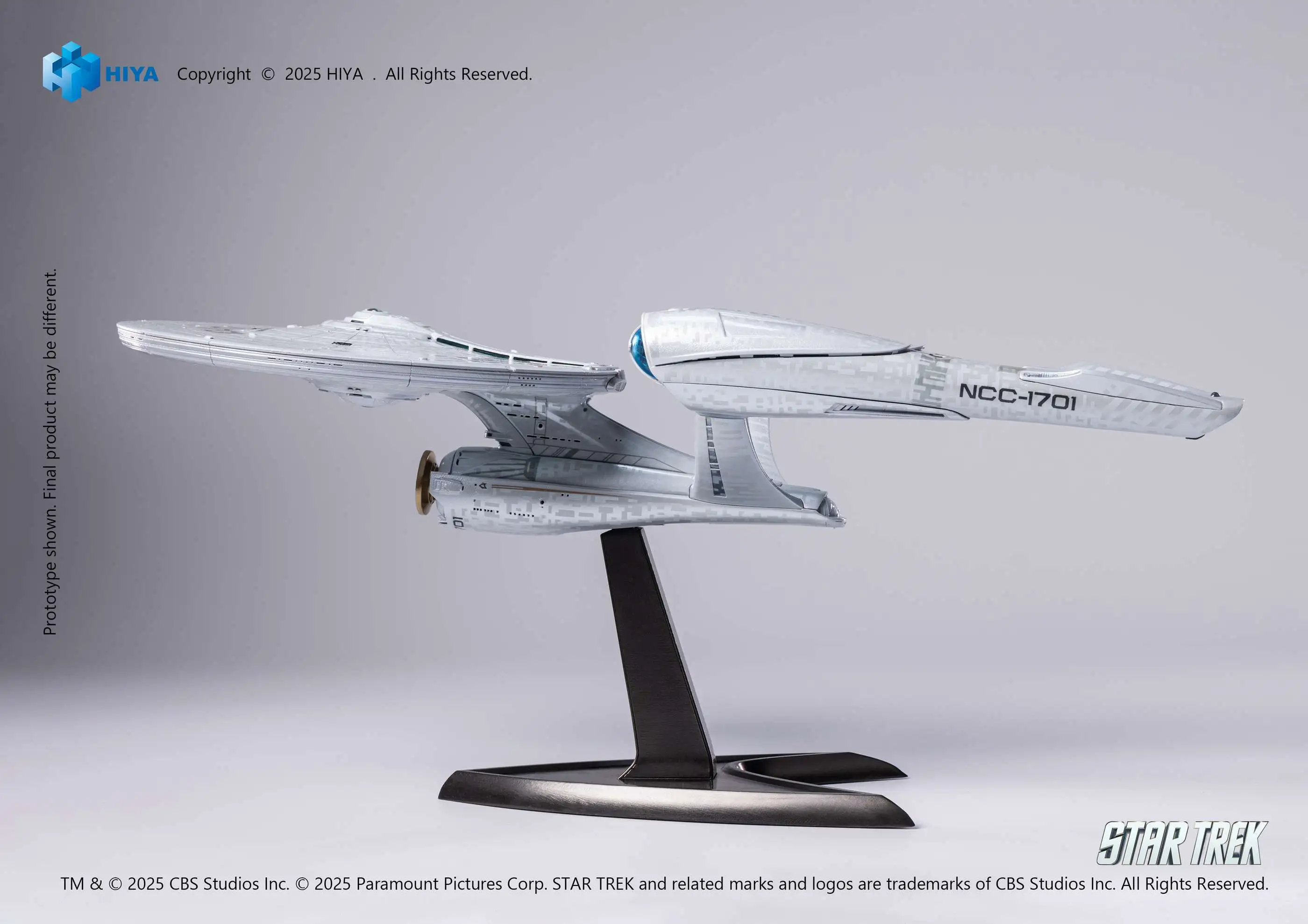 Hiya Toys proudly presents the first release in the REPLICAart Series-the Star Trek 2009 U.S.S. Enterprise NCC-1701! Boldly go where no collector has gone before with this highly detailed, collection-grade replica featuring authentic light up effects! Meticulously crafted to capture its iconic design from the 2009 film, it measures nearly 15" in length, showcasing the elegance and detail of the Enterprise and allowing fans to relive the thrilling adventures of the Enterprise crew. The REPLICAart Series is dedicated to transforming unforgettable cinematic vehicles into touchable works of art, making this U.S.S. Enterprise a must-have for collectors and Star Trek enthusiasts alike.