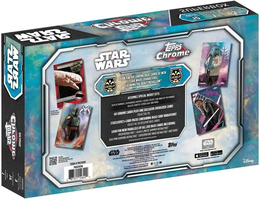 Star Wars Topps 2025 Chrome Exclusive Trading Card SUPER Box [15 Packs + 1 Oversized Card] has successfully been added to your cart!