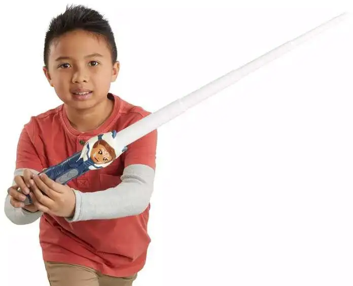 - FLICK TO EXTEND: Kids ages 4 and up can extend the Star Wars Lightsaber Squad Ahsoka Tano white Lightsaber blade for imaginary battles with a flick of their wrist