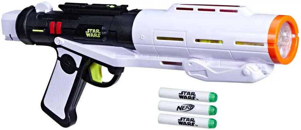 - GLOW-IN-THE-DARK DARTS: This Star Wars toy comes with 3 official Nerf glow-in-the-dark foam darts