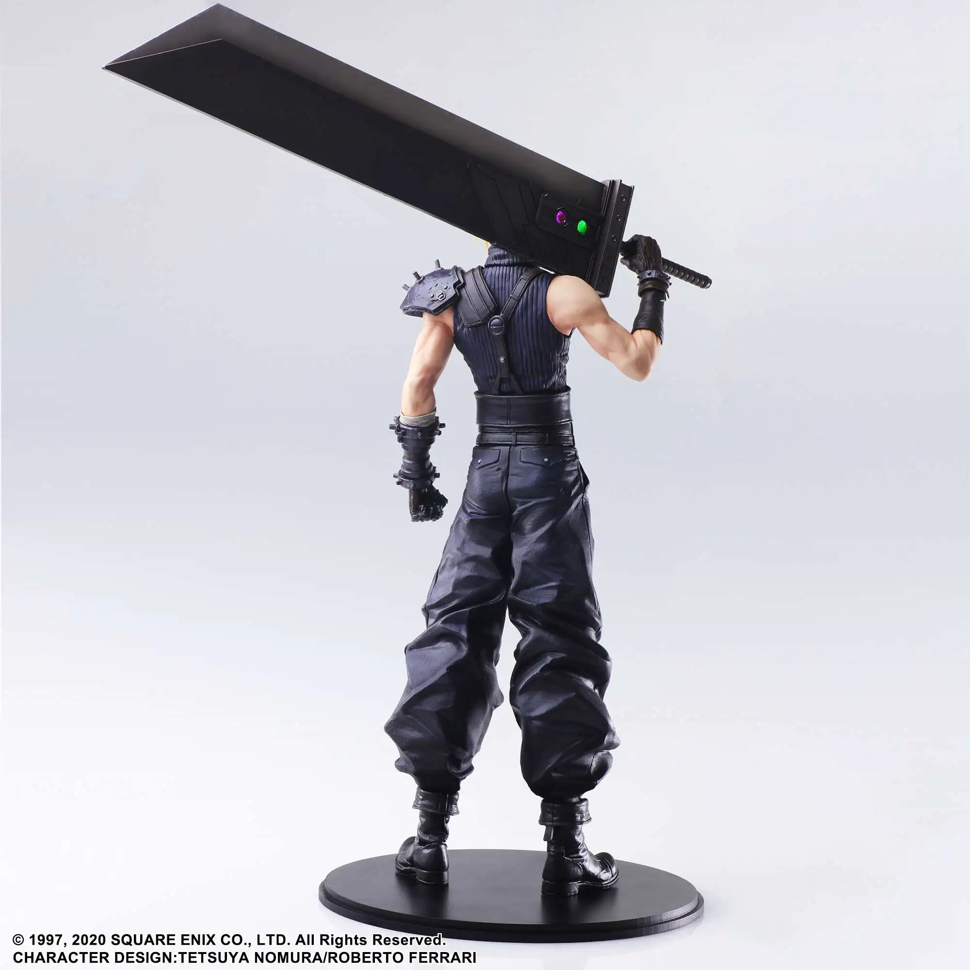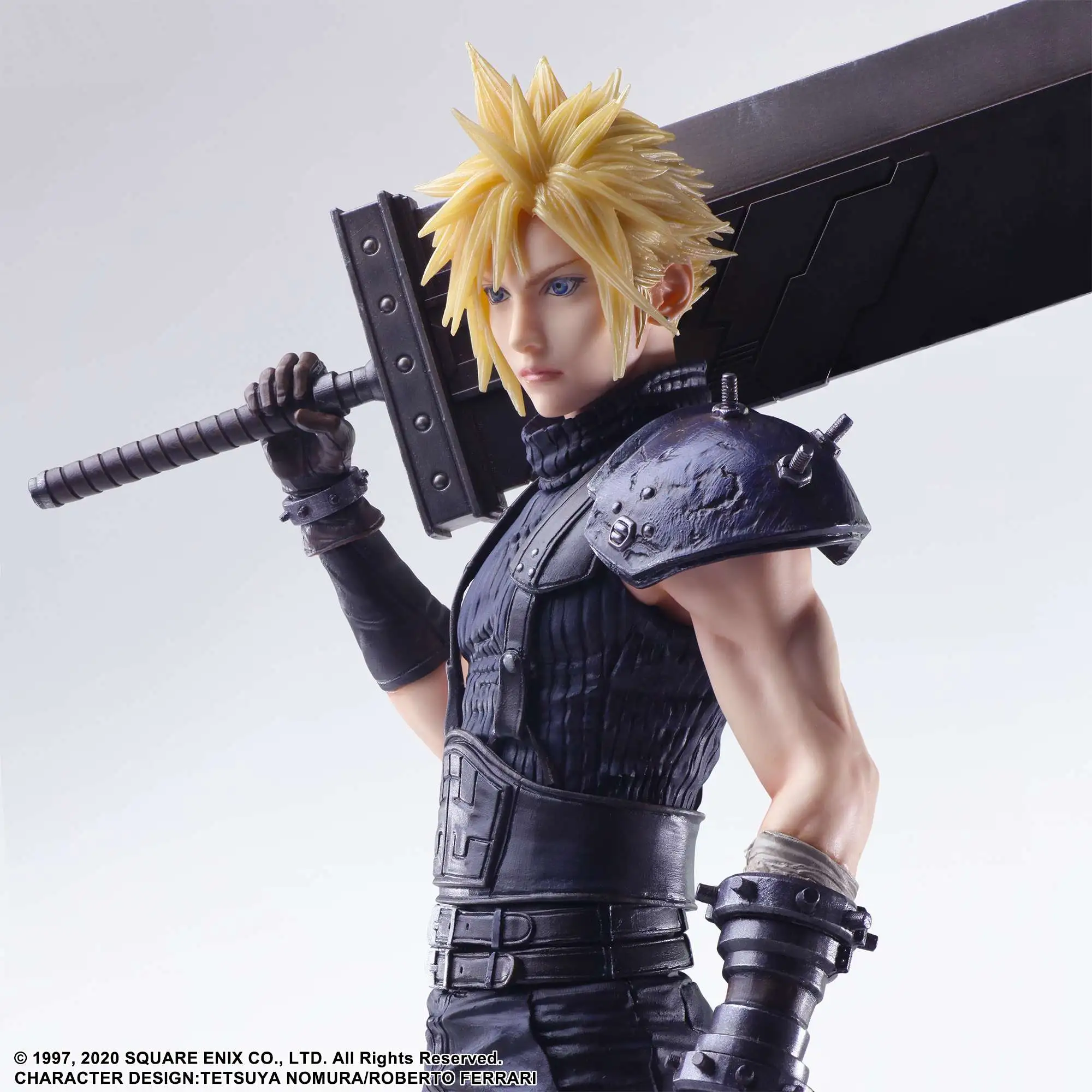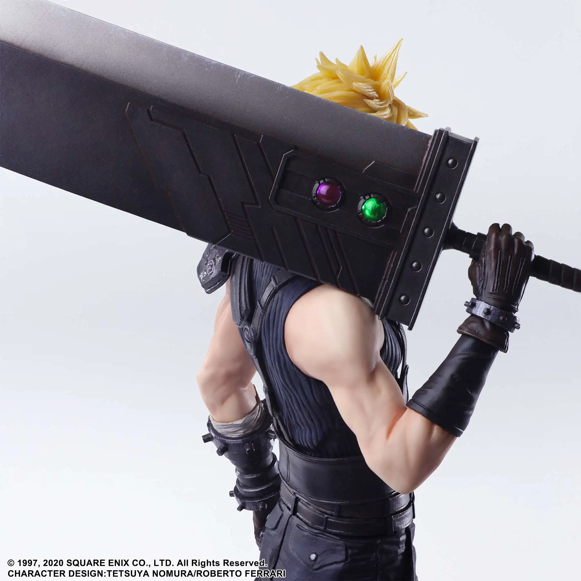 Cloud's dignified expression has been captured, and his hair has been sculpted with attention to detail down to the tips. The materia embedded in the Buster Sword has also been faithfully reproduced. The figure strikes a powerful pose, while carrying a Buster Sword in one hand.