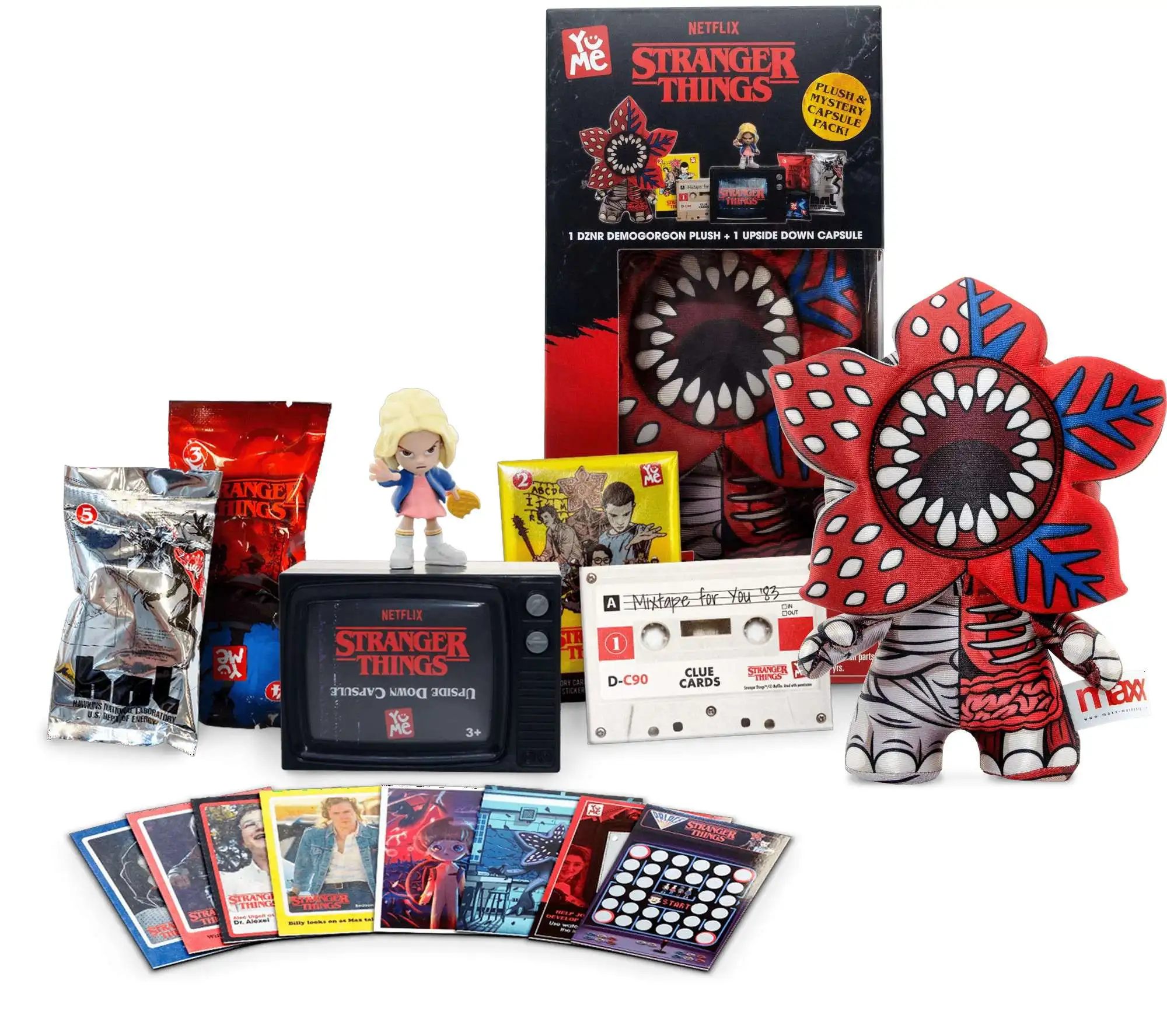 - EXCLUSIVE ARTWORK & COLLECTIBLES: This bundle includes 1 Stranger Things Upside Down Mystery Capsule and 1 DZNR Demogorgon 7.5 Plush!
