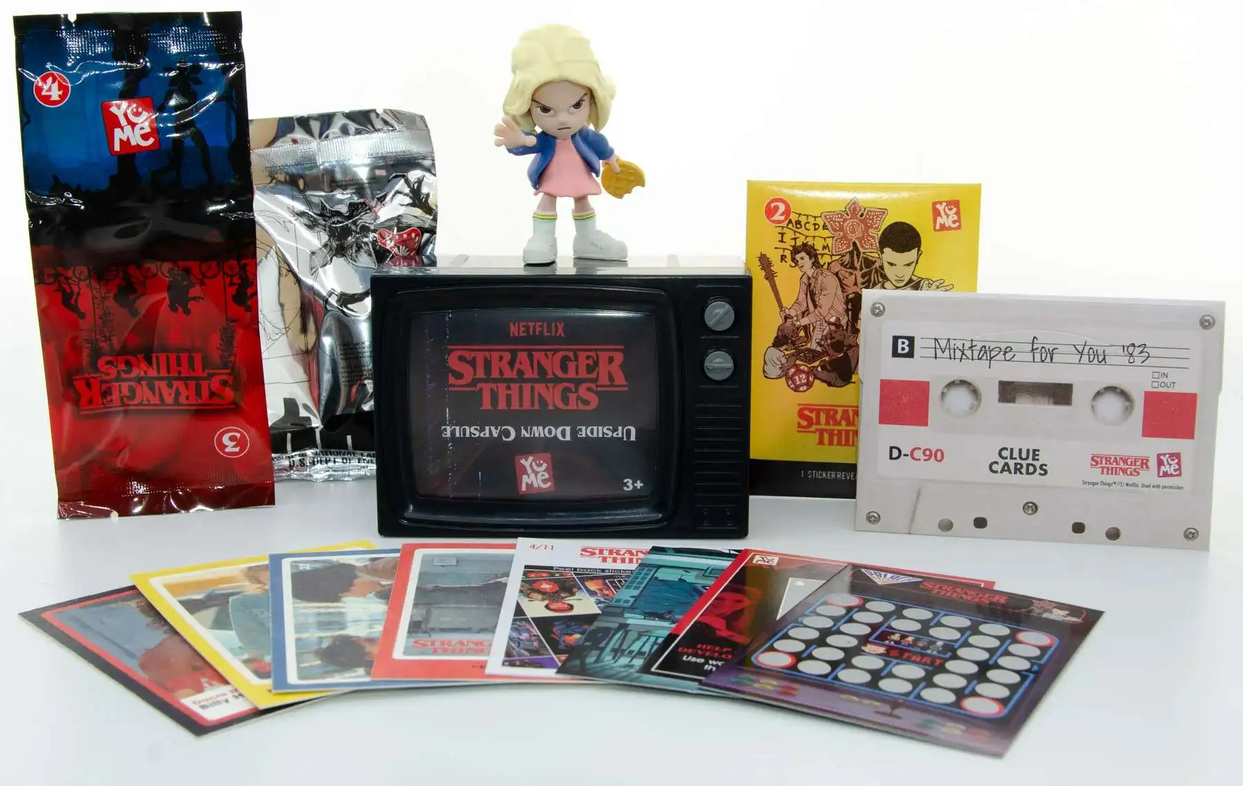 - THE MYSTERY OF HAWKINS: Unbox the retro experience and transport yourself back to the 1980s with fun and exciting mystery clues, games, trading cards, stickers and collectible figurines, and plush.