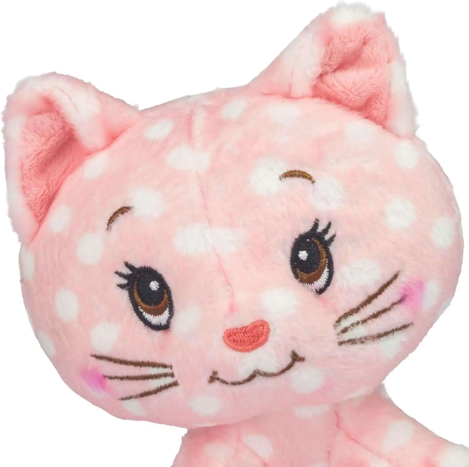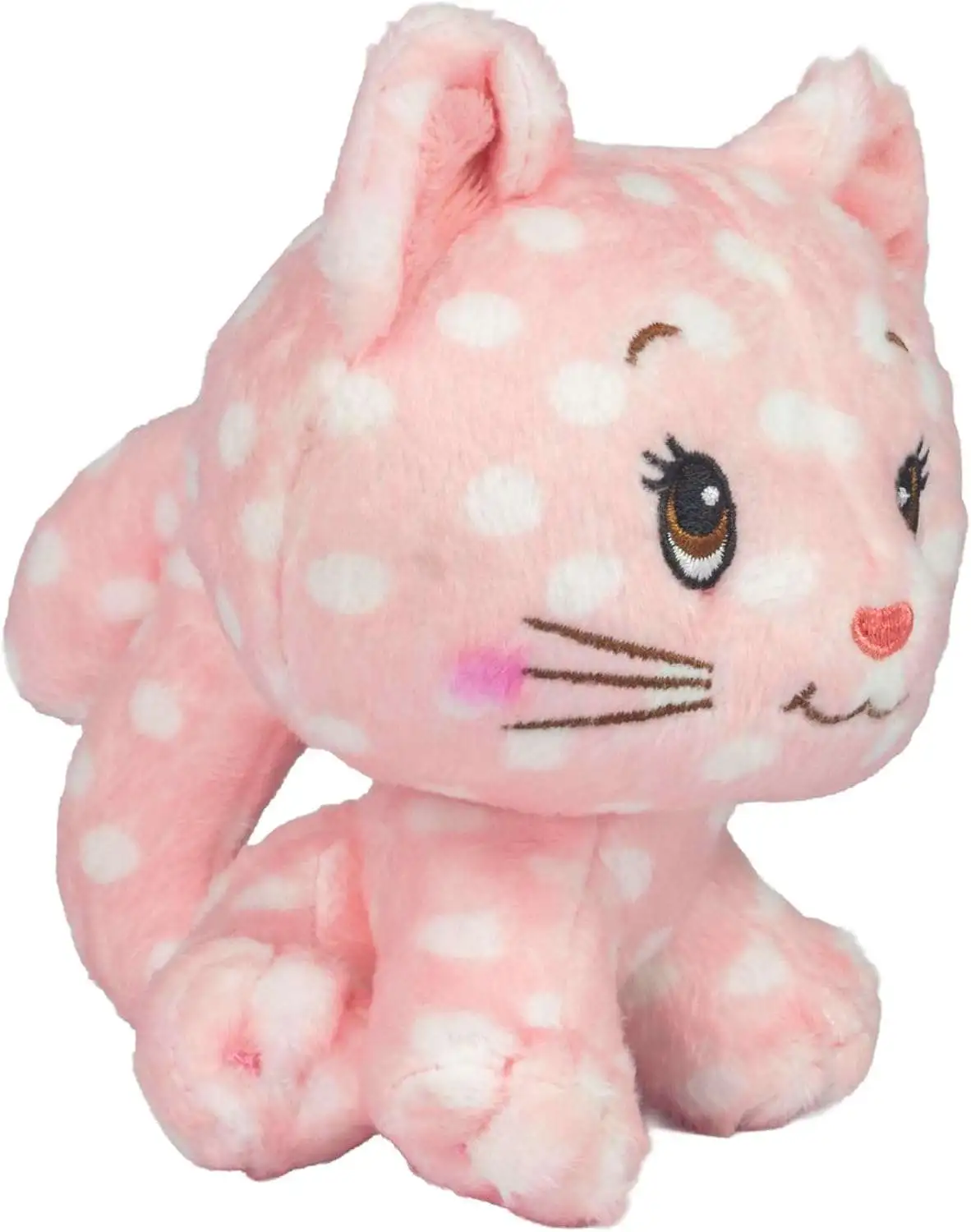 - 5" Custard is showcased in super soft pink polka dot plush, classically styled ear to tail and perfect for display, playtime, and cuddling.