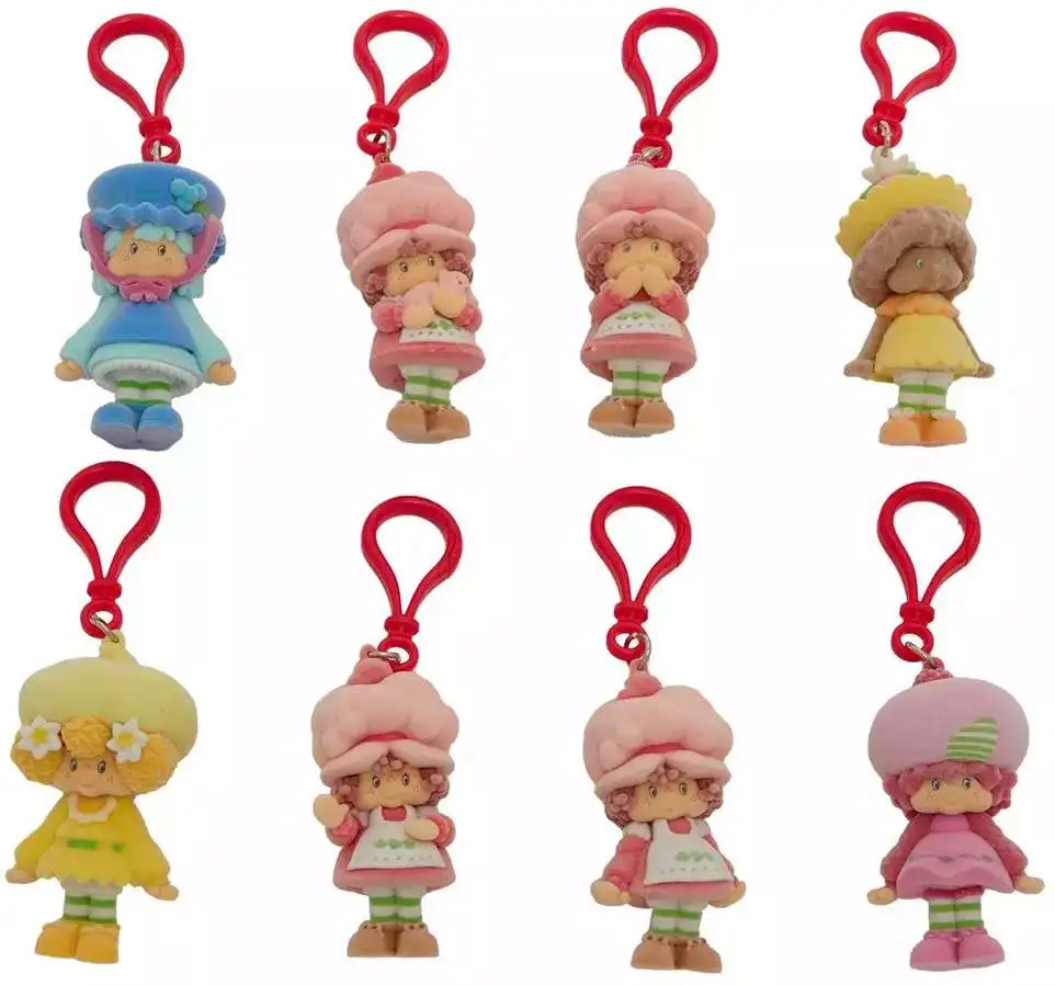 - Features 24 unique blind bag keychains of Strawberry Shortcake and friends with a soft flocked texture.