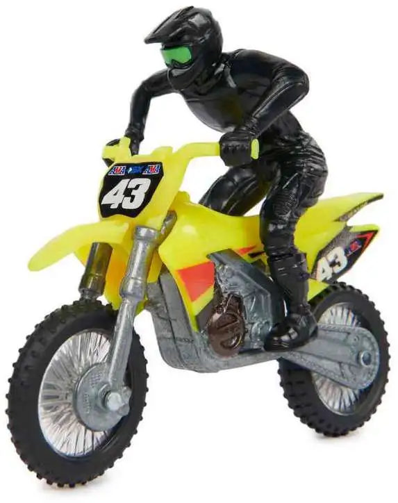 - This official 1:24 scale die-cast Supercross dirt bike comes with pro rider figure attached to the bike.