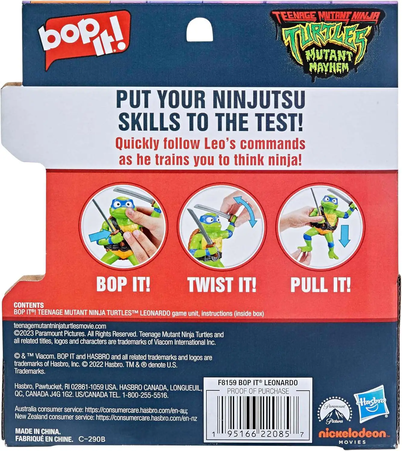 - BOP IT! WITH LEONARDO: Bop it, twist it, pull it, with the hilarious Bop It! Teenage Mutant Ninja Turtles edition, featuring Leonardo! It's a laugh-out-loud, action-packed game for 1 or more players