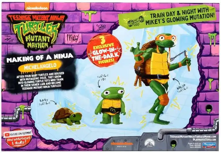 Teenage Mutant Ninja Turtles Mutant Mayhem The Making of a Ninja Michelangelo Exclusive Action Figure Set [3 Glow In The Dark Figures] has successfully been added to your cart!