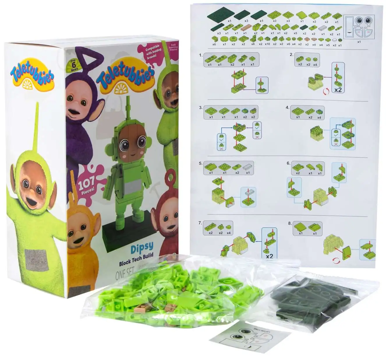 - Create a vibrant Teletubbies world with 107 building blocks.