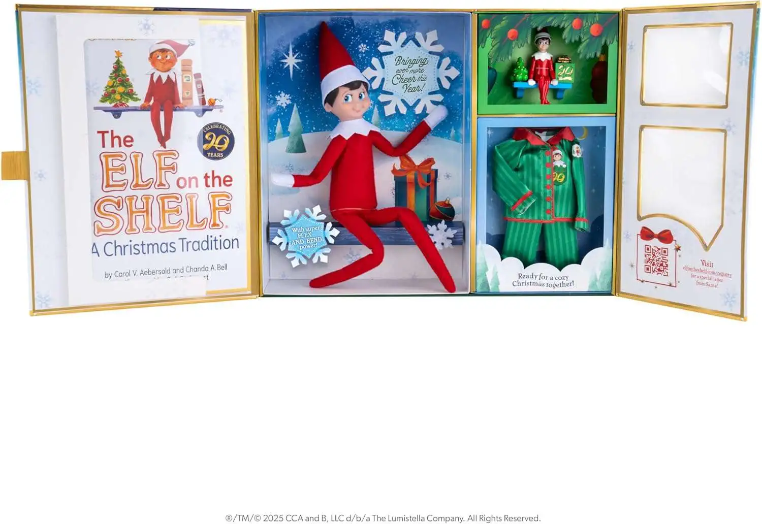 - Newly Updated Storybook and Keepsake Box: Inside this exquisite anniversary box set is everything you need to begin (or continue) a cherished tradition. This set comes with the 20th edition The Elf on the Shelf: A Christmas Tradition book, keepsake box, and adoption certificate. Also comes with a limited-edition luxury loungewear and an ornament keepsake.