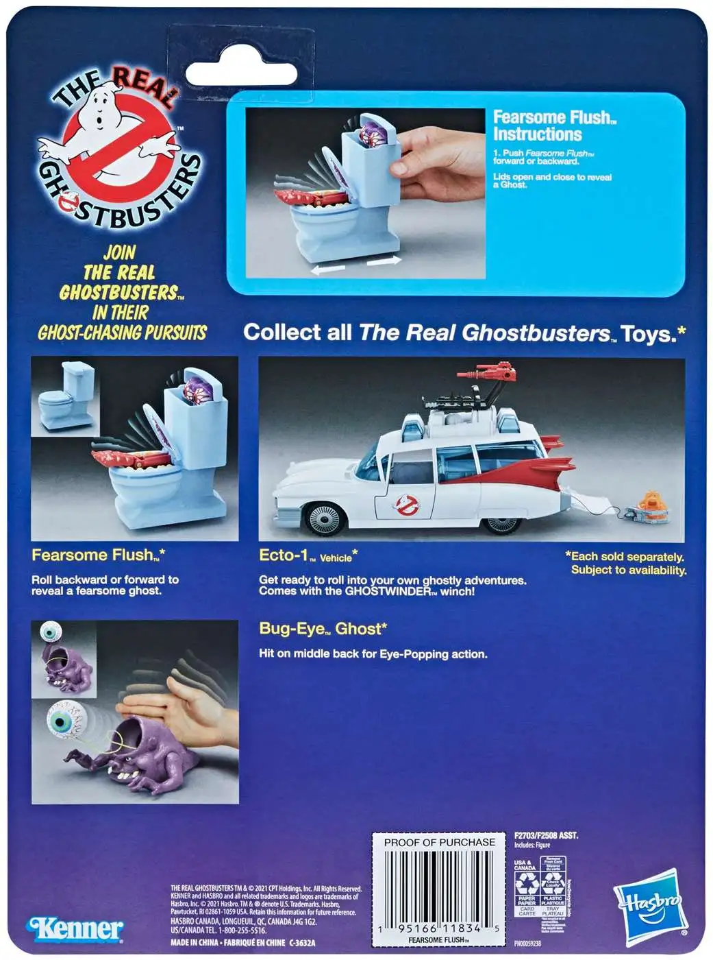 - The Kenner Classics Fearsome Flush toy is designed with a fun action feature, letting kids ages 4 and up imagine eerie encounters while rolling the figure backward or forward to reveal a fearsome ghost