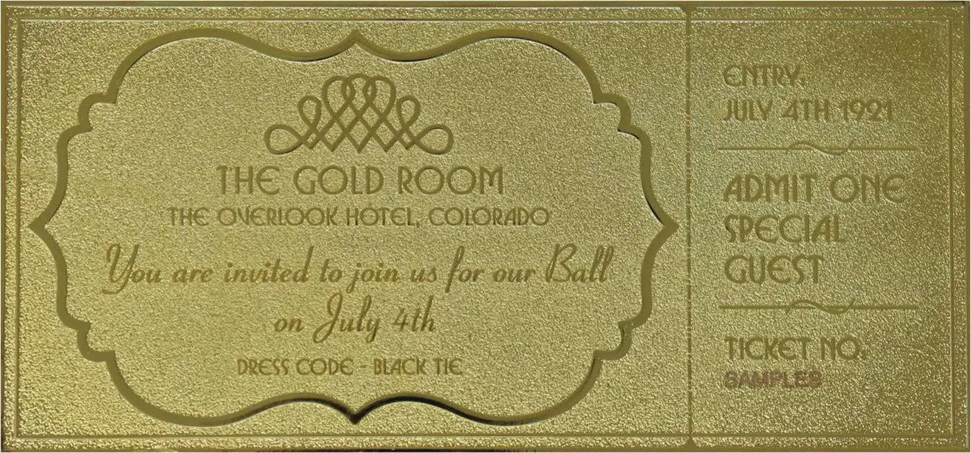 The Shining Hotel Ticket 24K Gold Limited Edition Metal Replica