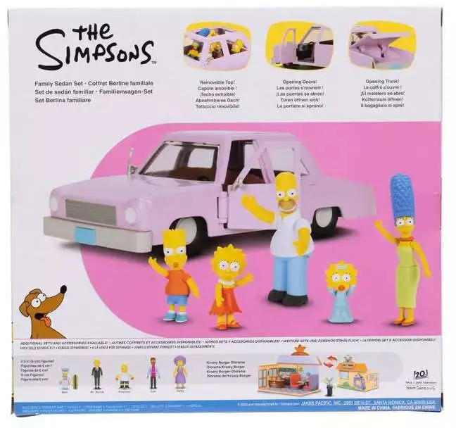 Inspired by the iconic animated series The Simpsons, comes the officially licensed toys and collectibles by JAKKS Pacific. Immerse yourself in Springfield with The Simpsons Sedan with Family Set. It includes Homer's iconic sedan with all five family members in 2.5-inch scale (Homer, Marge, Bart, Lisa, and Maggie). Each figure features multiple points of articulation to pose and play. The entire family fits in the sedan for a stroll around Springfield. Perfect for fans and collectors, this figure has remarkable detail and fun, engaging features. Collect the full range of The Simpsons toys and collectibles by JAKKS Pacific. For Ages 4+.