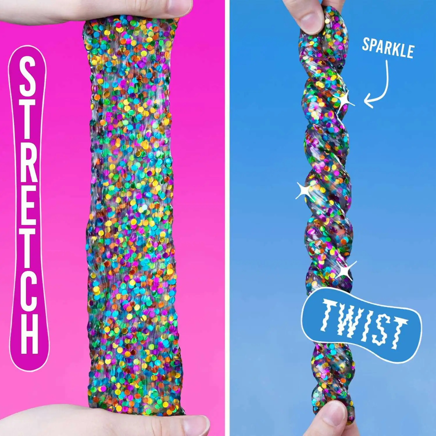 - Clear putty with multi-colored laser effect dot shaped glitter pieces