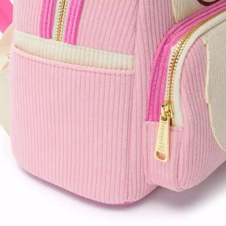 - Corduroy mini backpack, Front zip pocket features pieced design