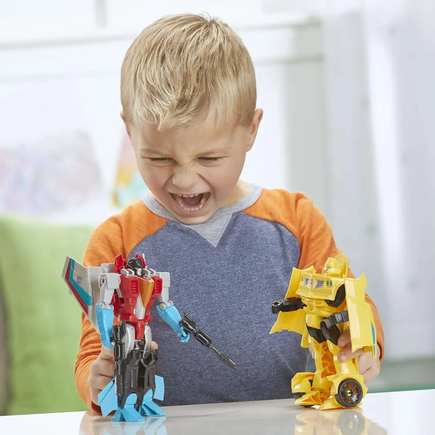 - Features 7-inch action figures of Bumblebee and Starscream, bringing iconic Transformers characters to life.