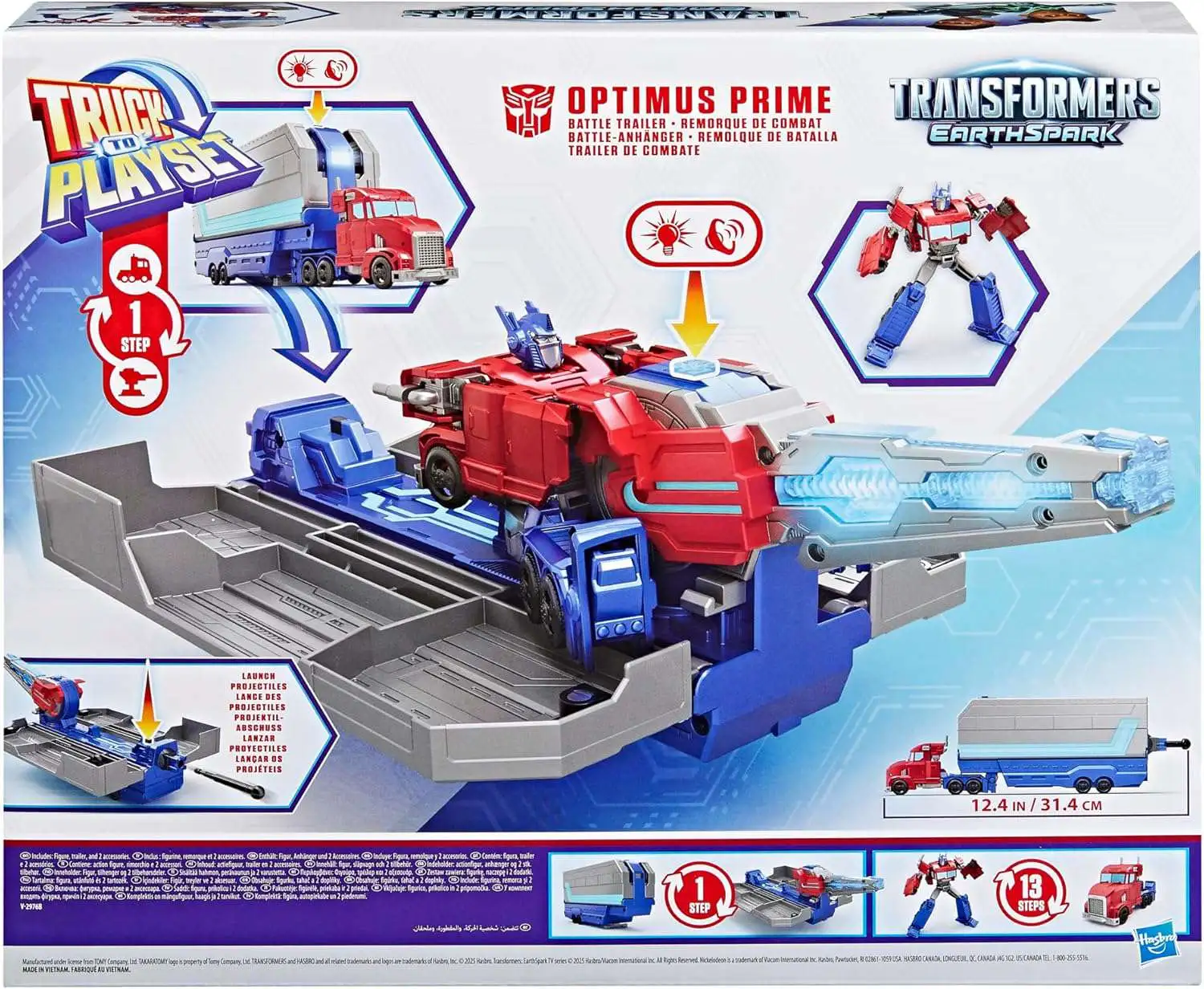 - 2-IN-1 OPTIMUS PRIME FIGURE: 5-inch (12.5 cm) Transformers action figure changes from robot toy to truck toy in 13 steps. In robot mode, figure can sit on the battle station. In truck mode, kids can attach the trailer and roll out!