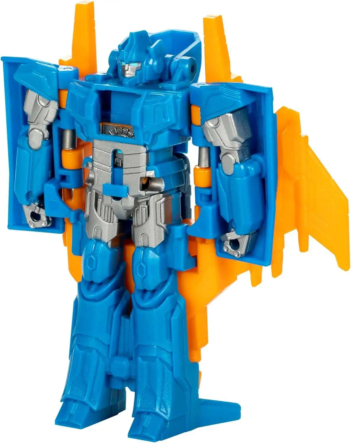- COG CHANGER AUTOMATIC CONVERSION: Slide down the panel on the Transformers figures chest, press the cog, and the figure automatically converts in 1 step from a robot to a Cybertronian jet