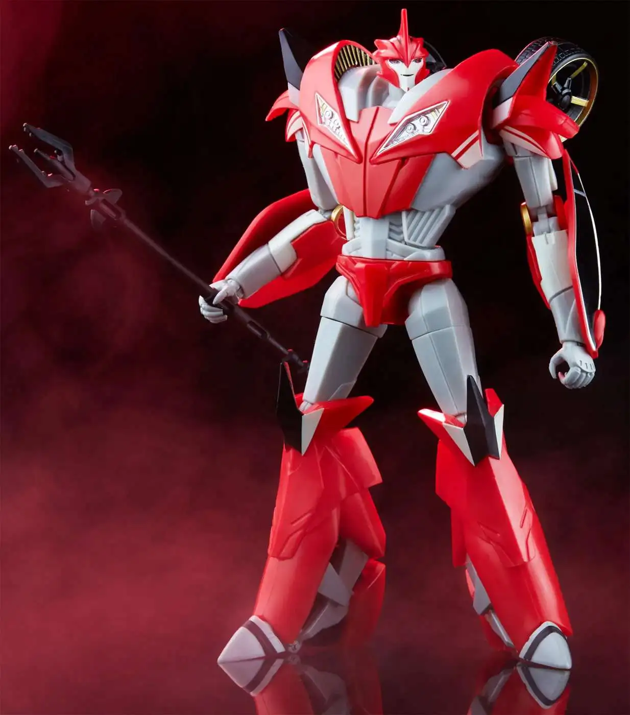 Highly poseable with more than 75 deco ops, this Knock Out R.E.D. figure was designed to bring collectors our most screen-accurate version of the character to display on their shelf. The sly Decepticon medic from the Transformers: Prime animated series features over 26 points of articulation. Includes 2 sets of alt hands, a buzzsaw and 2 drill arm attachments, and a spear accessory. Features spinning wheels that attach to the figures back.