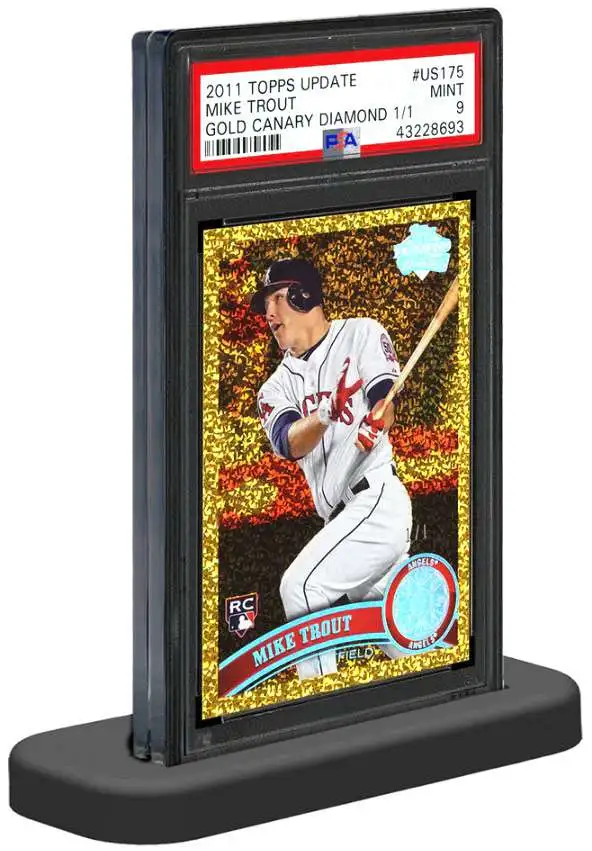 - The PSA stand features a sleek black base that holds the card at a slight angle for superior presentation