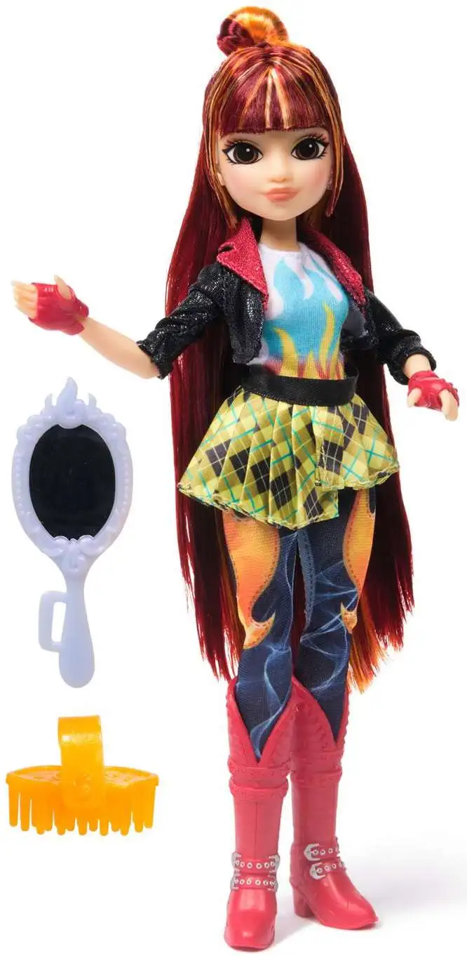 - Authentic doll accessories: Valentina comes with a hand mirror accessory for added play. Doll clothes include all-new riding pants with power markings, black jacket, plaid skirt, studded boots & more. Keep her hair soft with the brush.