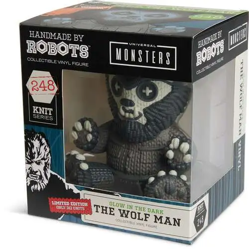 Universal Monsters Handmade by Robots Wolf Man 6-Inch Knit-Look Vinyl Figure [Black & White, Glow-in-the-Dark] (Pre-Order ships January)