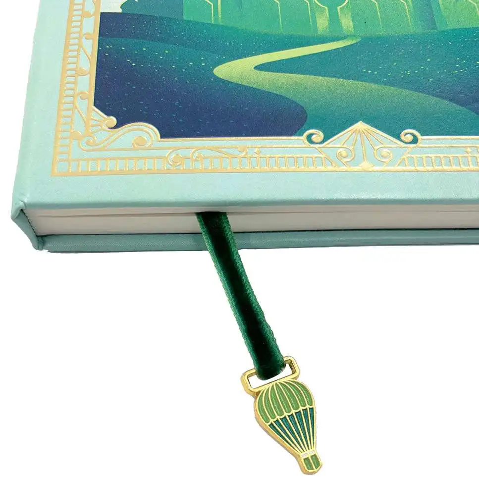 - This deluxe journal features a flexible and soft faux leather cover printed in full color, premium archival paper with an Oz-inspired design, and a velvet ribbon page marker with an enameled charm of the Wizards iconic hot air balloon at the end.
