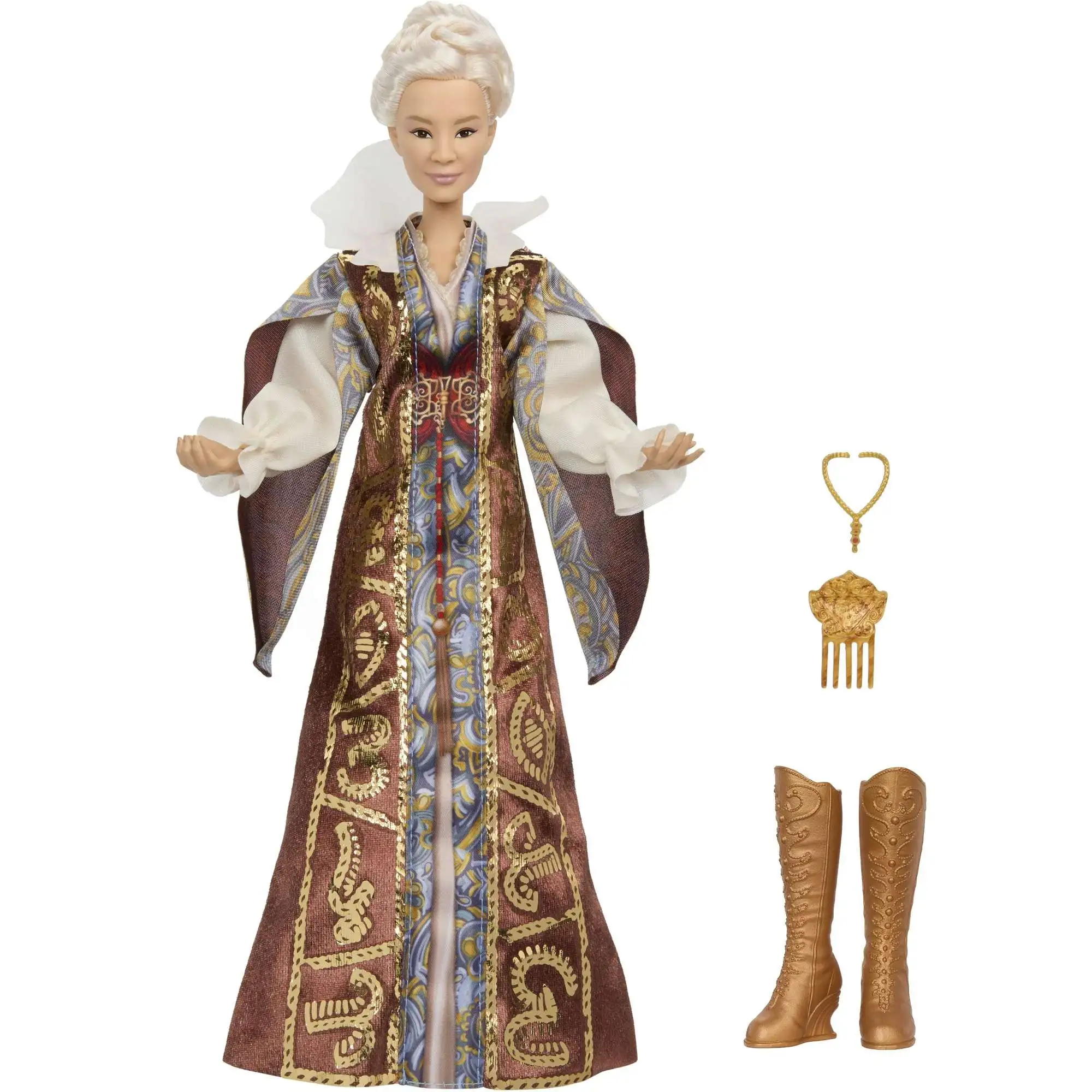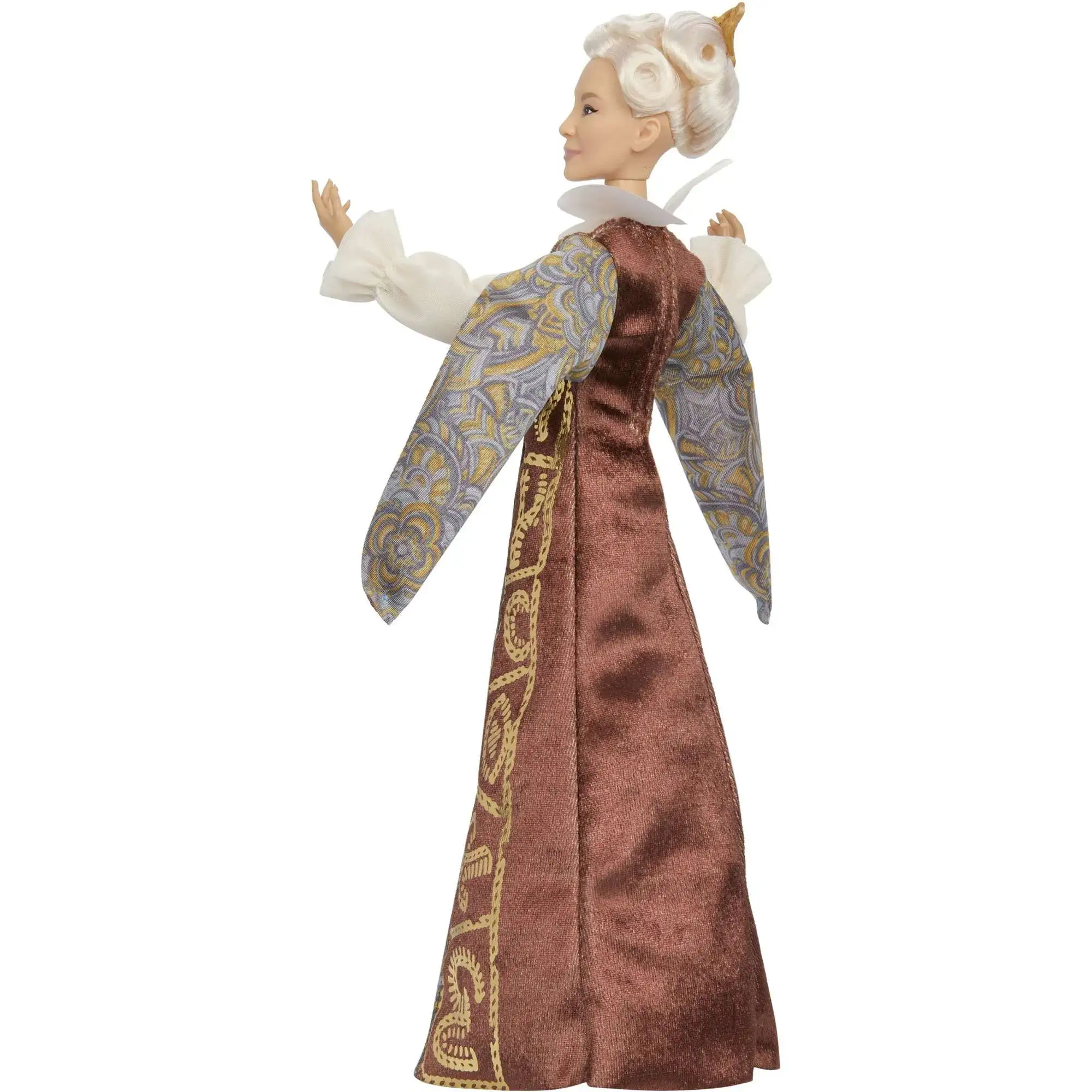 - Just like in the movie, her platinum hair is pinned back in an intricate updo, along with flexibility at the torso, elbows, wrists and knees for play and display!