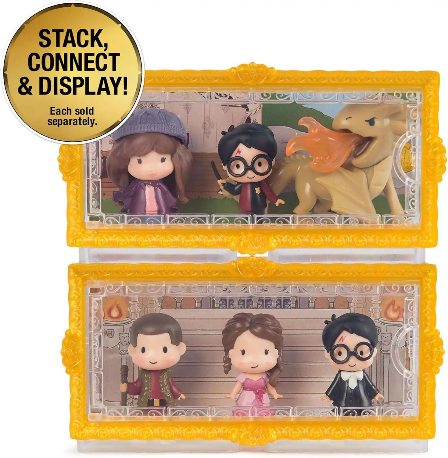 - STACK, CONNECT & DISPLAY: The unique Hogwarts portrait frame case stacks & connects with the other Micro Magical Moments mini toys (each sold separately). Build your own display