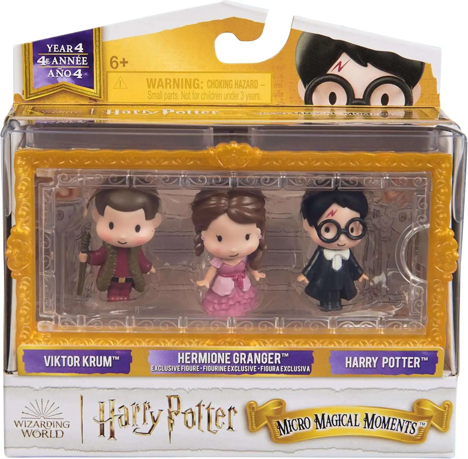 - 3 HARRY POTTER FIGURES: Discover 1.5-inch figures of Harry Potter, Hermione Granger & Viktor Krum at the Yule Ball, a clear display case and 3 stands. Year 4 movie details make these tiny Harry Potter toys a must-have