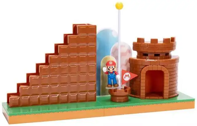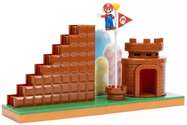 The Course Complete Playset lets you experience the thrill of conquering a course just like in the Super Mario video games. Help Mario climb up the iconic stairs by spinning the backside lever, then slide Mario down the flagpole to complete the course and enter the castle. Add to your Super Mario collection with this classic playset.