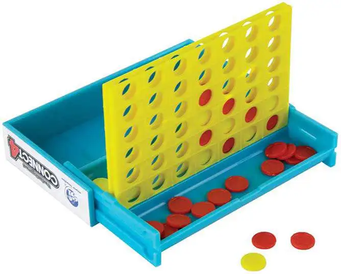 Challenge a friend to rule the grid in the classic game of Connect 4, now available in miniature size.