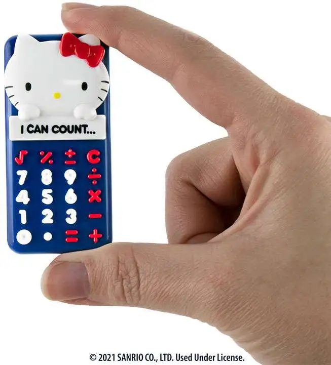 Worlds Smallest Hello Kitty Calculator measures 25x.252.75inches. Slide the Hello Kitty head up to turn on and slide down to turn off. Non-replaceable battery included. Available in two colors red and blue.