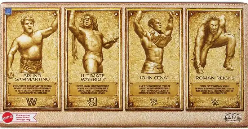 WWE Wrestling Elite Collection Hall of Champions Bruno Sammartino, Ultimate Warrior, John Cena & Roman Reigns Action Figure 4-Pack
