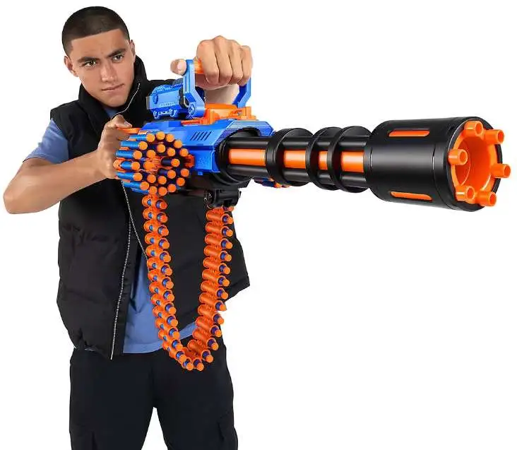 - Belt-fed blaster: the motorized rage fire has a 40 dart capacity belt that feeds into, and automatically rotates through, the blaster