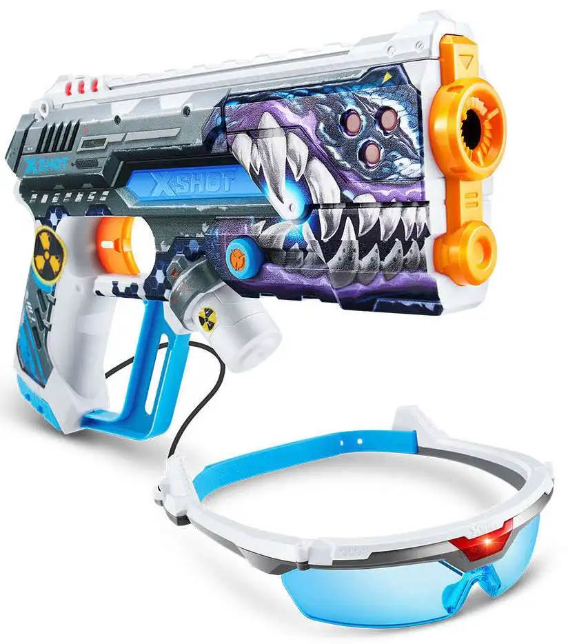 - Go the Distance: X-Shot Skins Laser 360 blasters can reach up to 180ft.